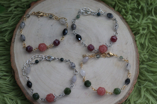 Peony, Tourmilinated Quartz and Moss Agate Bracelets