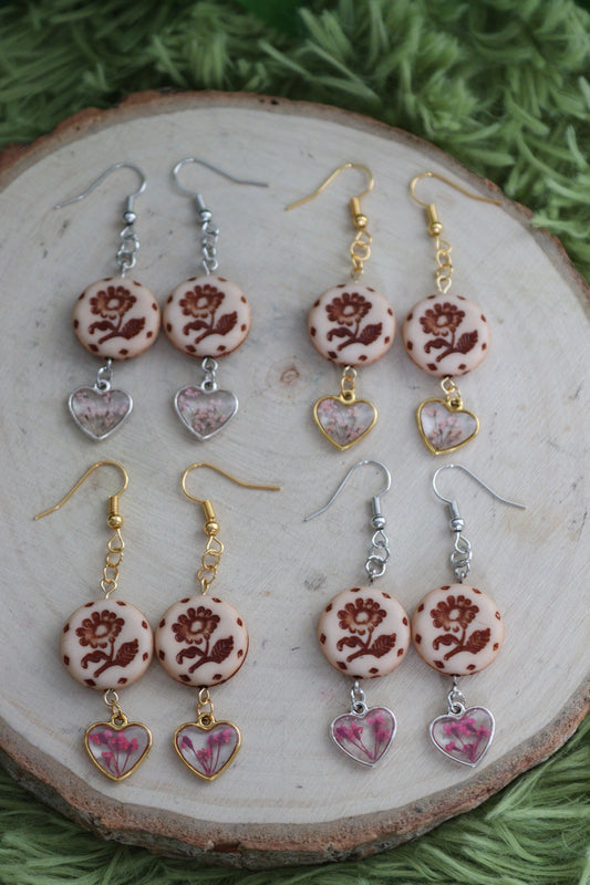 Floral Heart & Stamp Earrings